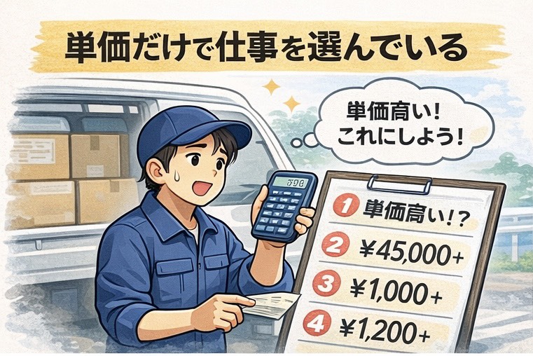 初心者ドライバーに多いのが、 「単価が高い案件=良い案件」 と思い込んでしまうことです。